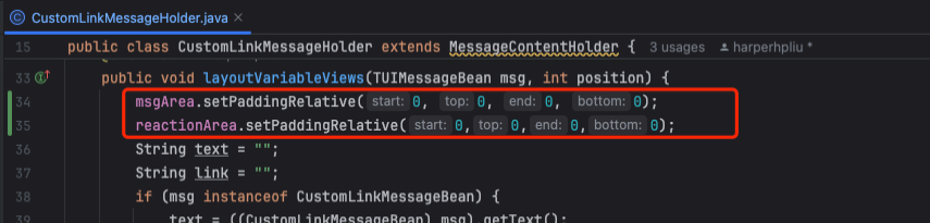 Method I: In the Holder where padding display is not required -> layoutVariableViews function, insert the following code: