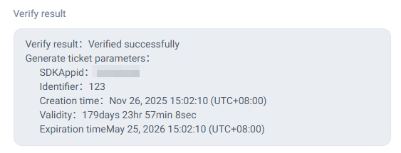 If verification succeeds, you can view the SDKAppID, UserID, generation time, service time, and expiration time of the UserSig in the verification results.