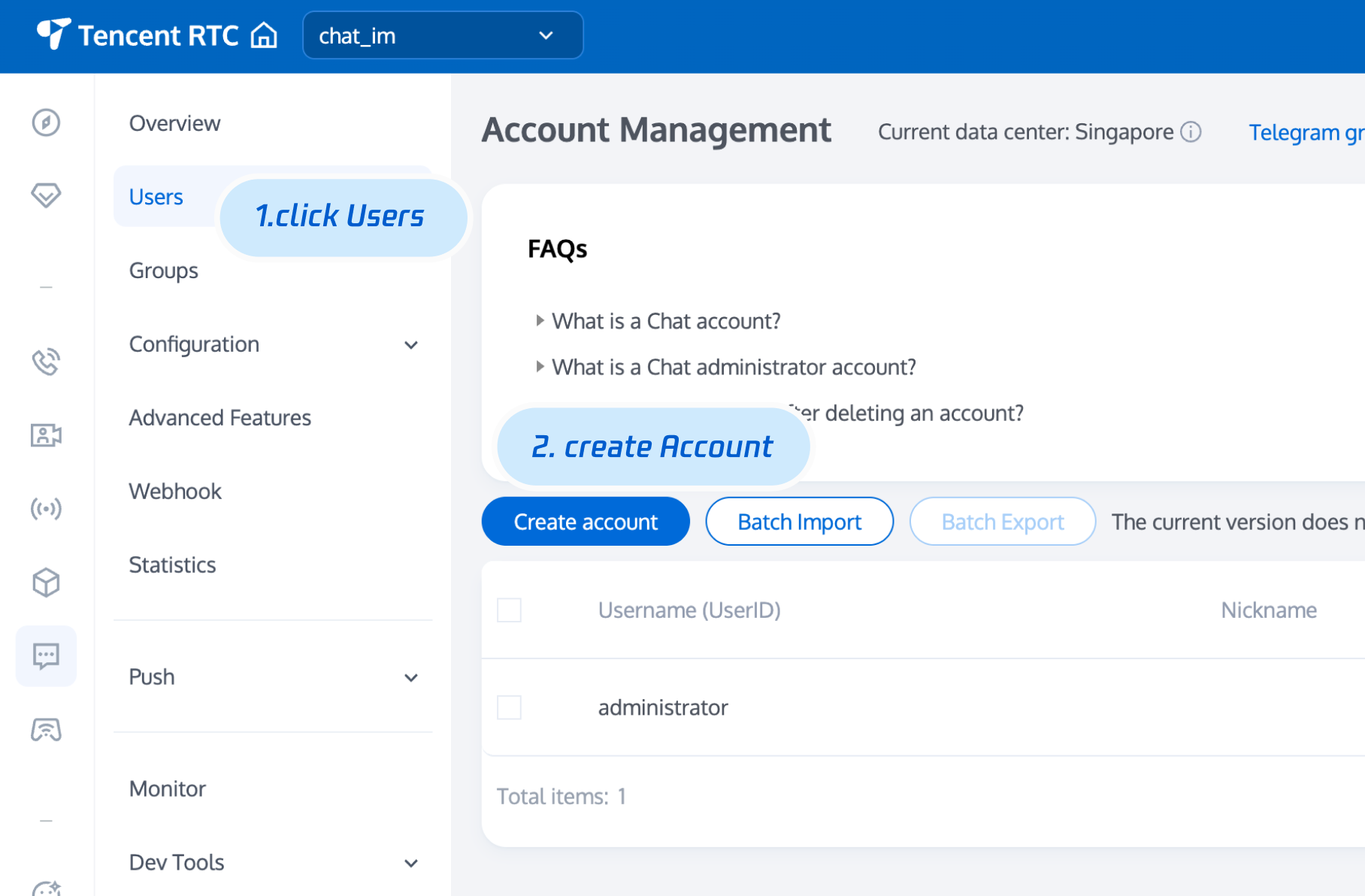 2. On the application management page, obtain the SDKAppID and key information from the SDKAppID column.