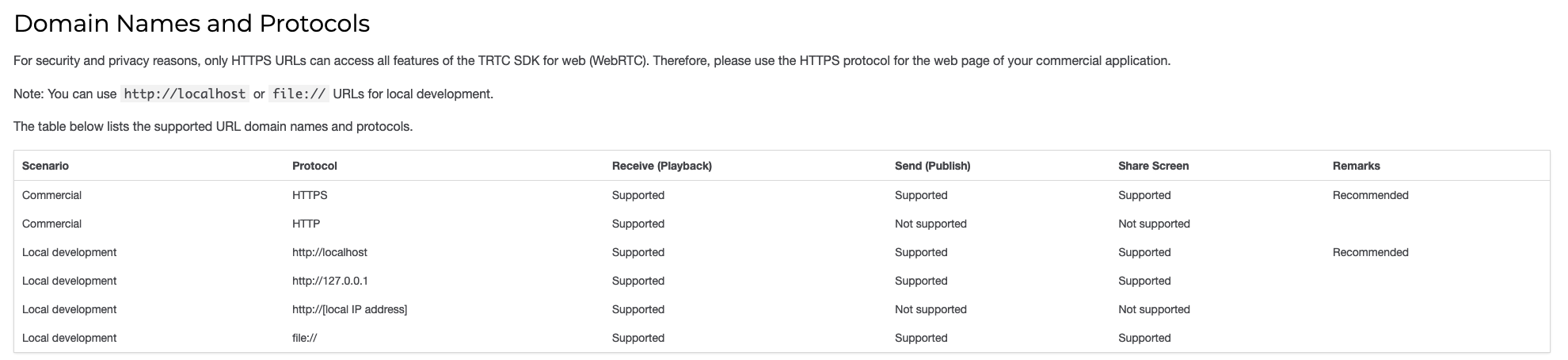 The production environment requires the use of an HTTPS domain name.
