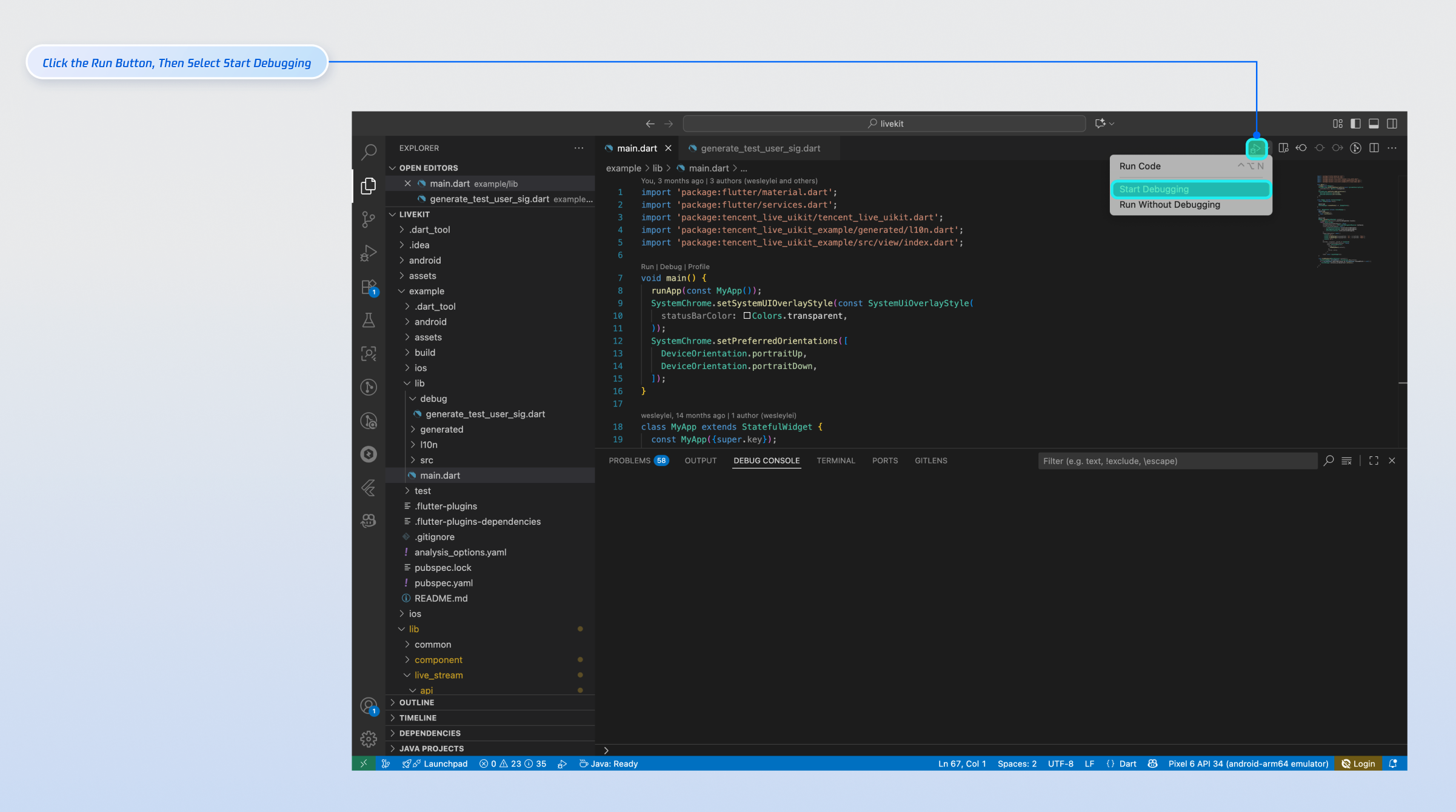 TUILiveKit/Flutter/livekit directory in Visual Studio Code.Setup