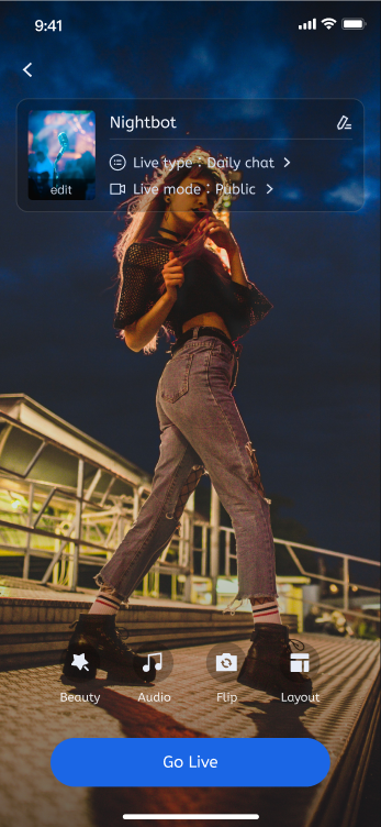 Audience Viewing | Audience can watch live streaming after entering the anchor's live streaming room, with features like audience mic connection, live room information, online audience, and bullet screen display. | |