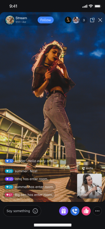 Co-Host Interaction: Supports real-time interaction (co-hosting) with viewers or other hosts during the live stream.
