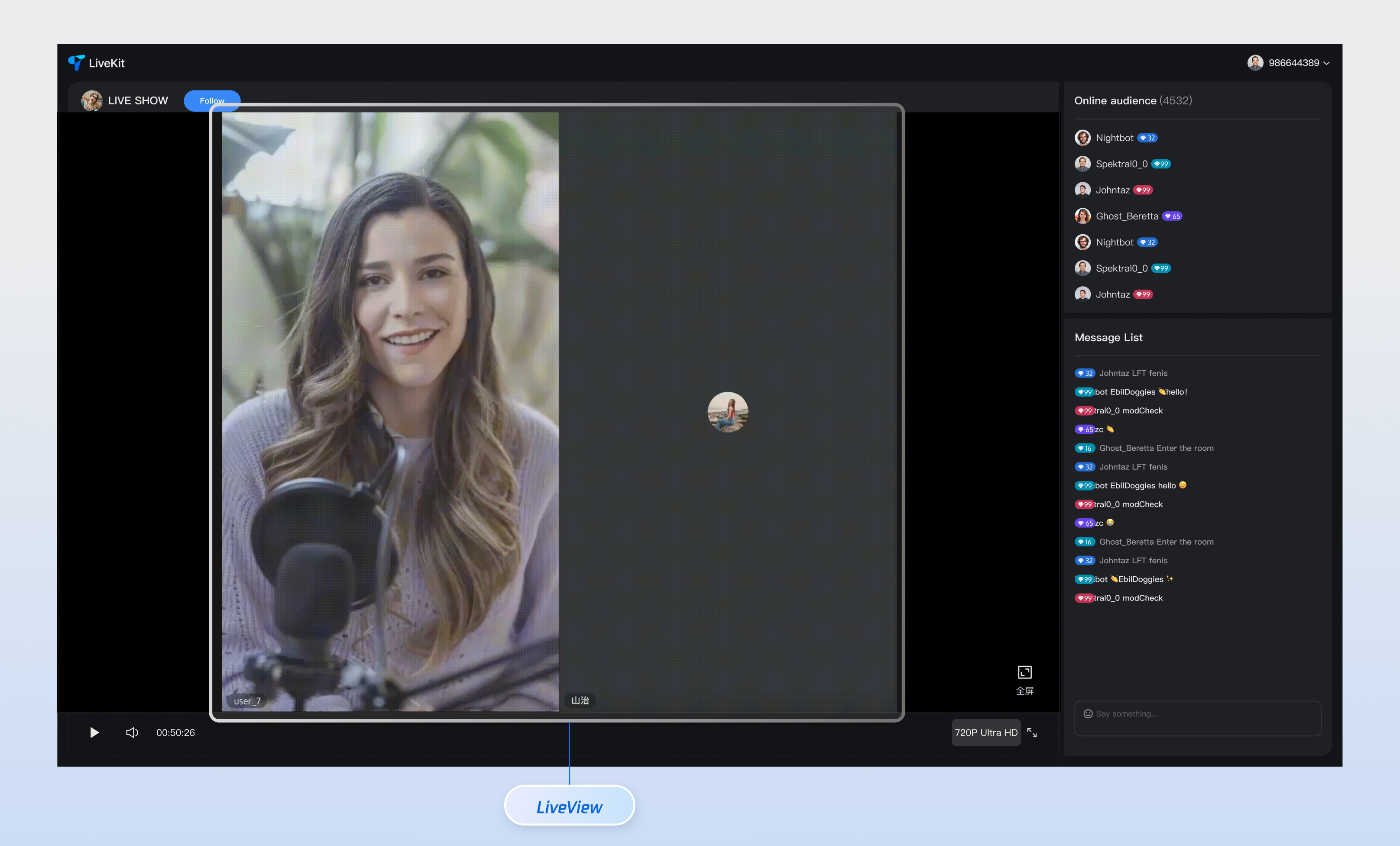 LiveView can automatically switch stream types based on the current user's identity (audience or co-host).