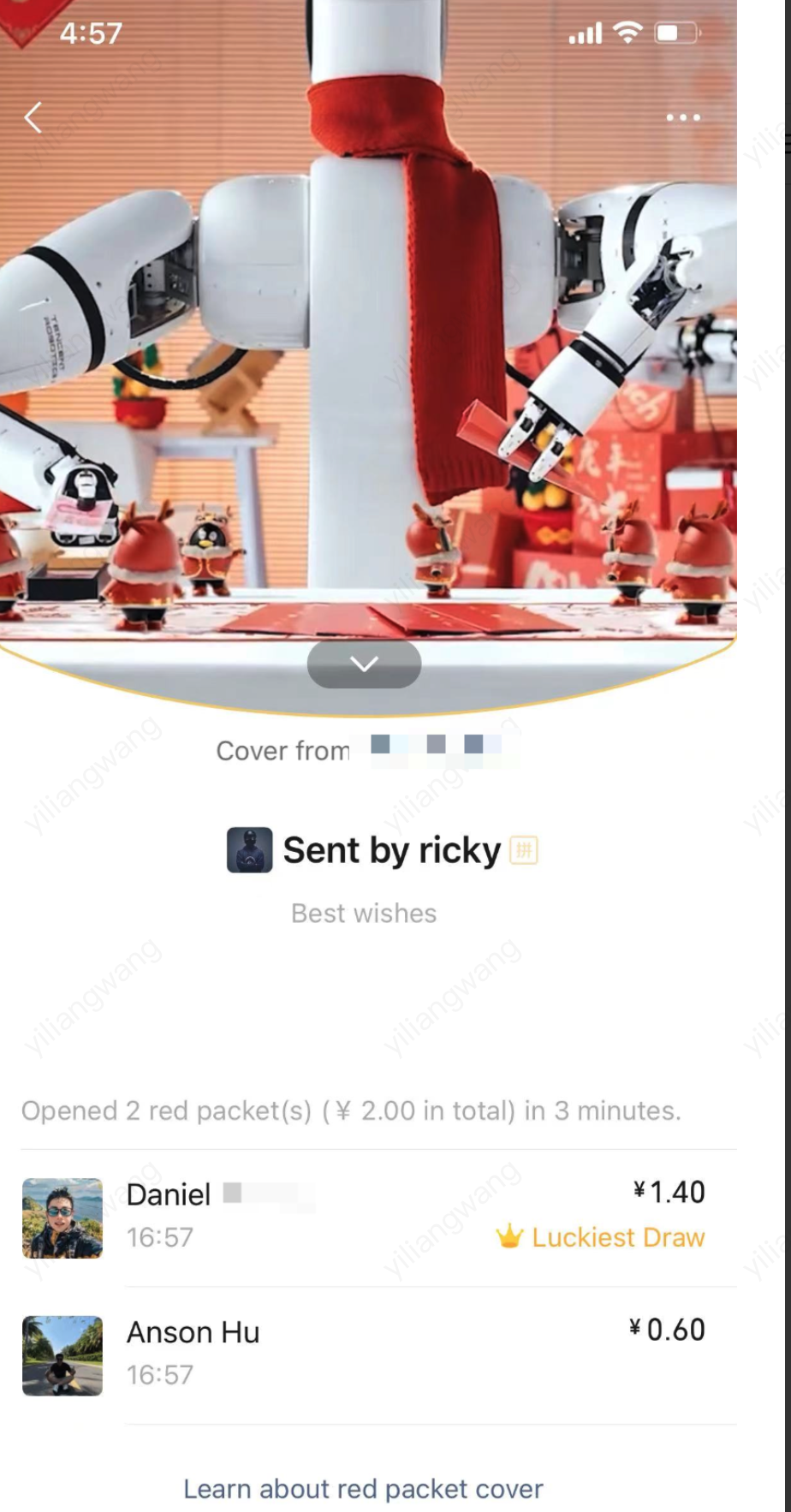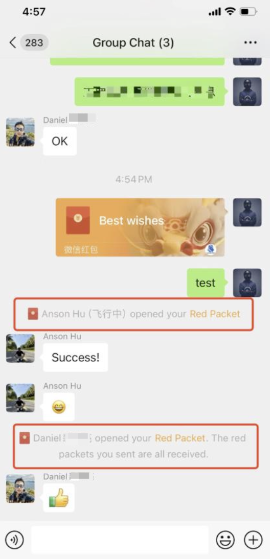 Last claim:"Daniel claimed your red packet. All your red packets have been claimed."