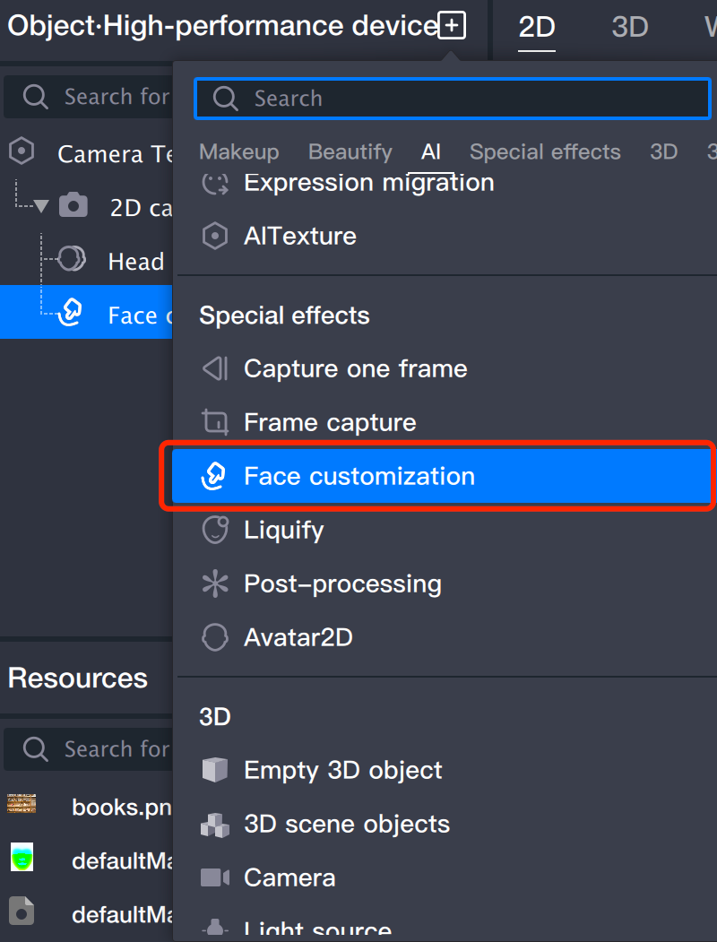オブジェクトパネルからフェイスモーフィングオブジェクトを追加します。