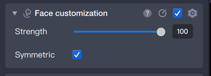 コンポーネントパネルでは、フェイスモーフィング強度や左右顔の対称性など、各種パラメータを細かく調整できます。
