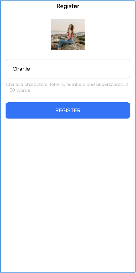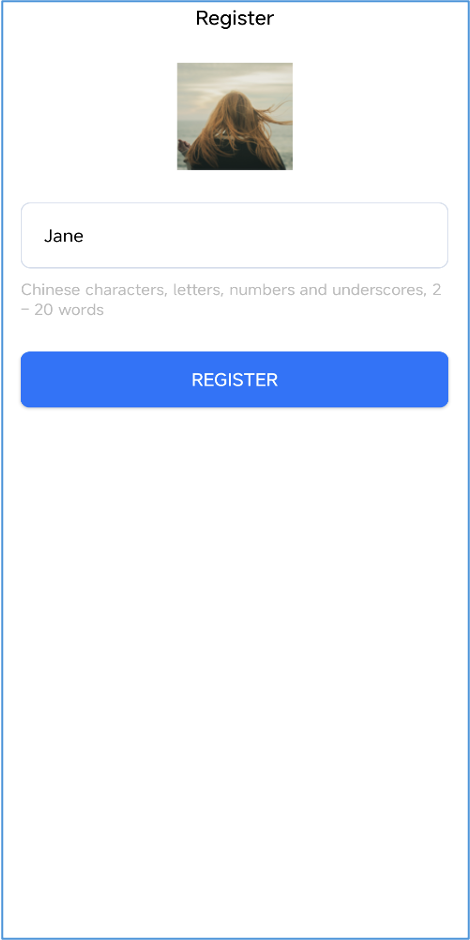 After the Demo starts, please enter an ID in the User ID field. If your current UserID has not been registered, you will enter the registration interface, where you can set a nickname for yourself.