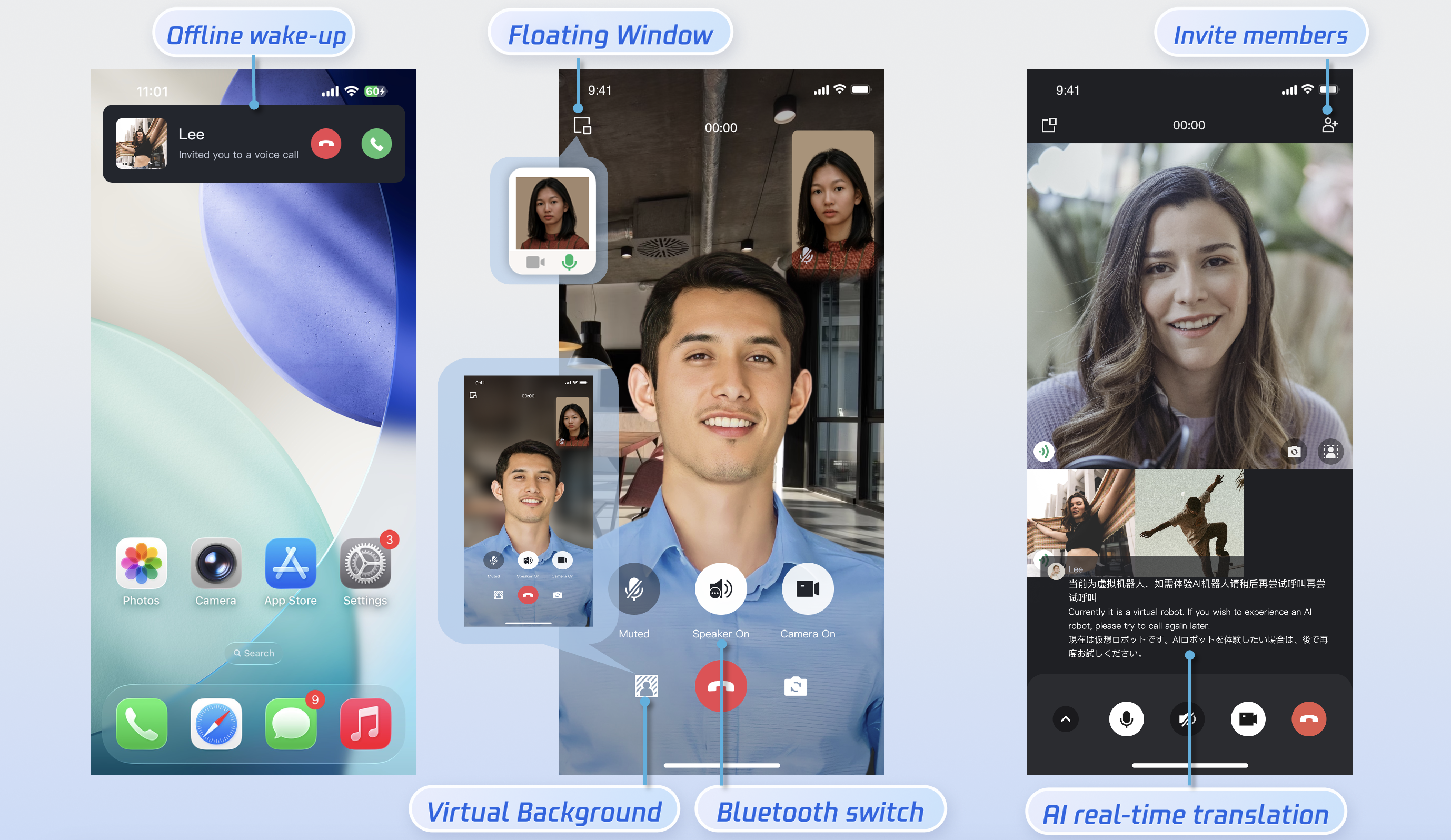 Once the callee has successfully logged in and the caller initiates a call, the callee will receive the call invitation, accompanied by a ringtone and vibration.