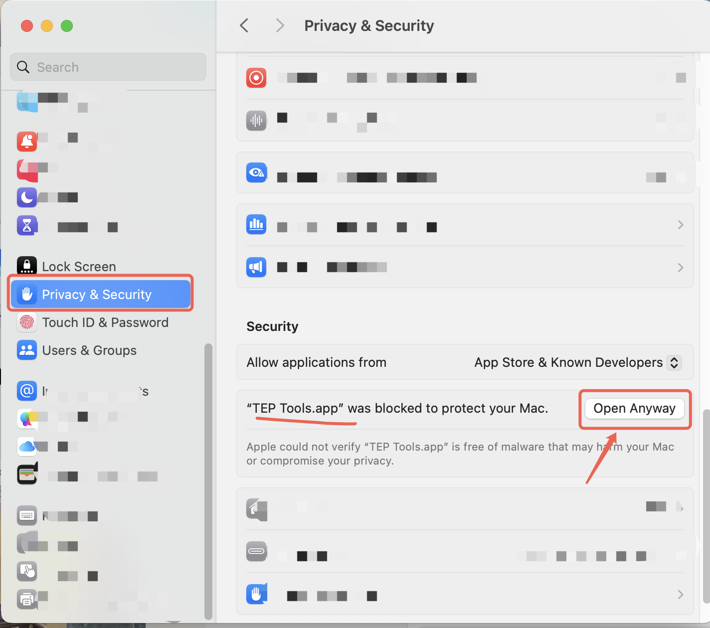 Click the Done button, then proceed to authorize the operation via system settings by following these steps: System Preferences > Security & Privacy > General tab > Click "Open Anyway" (Note: The path may vary slightly across different macOS versions), it can be executed and run normally. Refer to the image below: