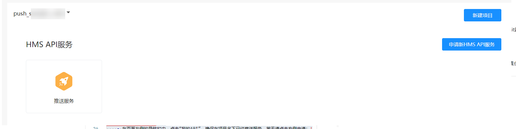 1. Log in to the API Console, click My APIs in the sidebar on the left side of the page. Ensure push service is available under the project name. If not, click Apply for new HMS API service on the right.