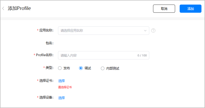 3. Profile file application: You must apply for a debug profile file in the debug stage, and apply for a release profile file in the release stage.