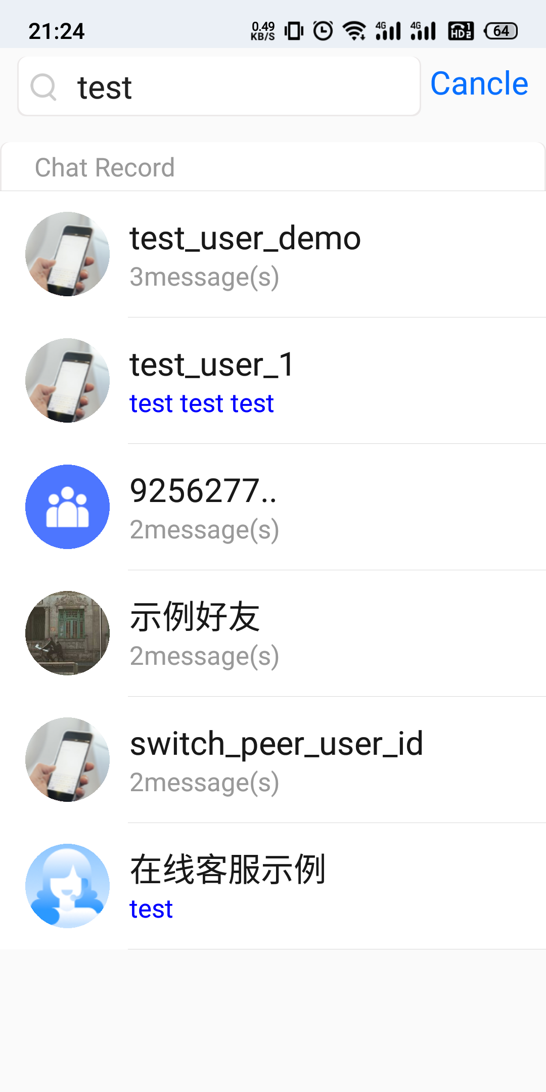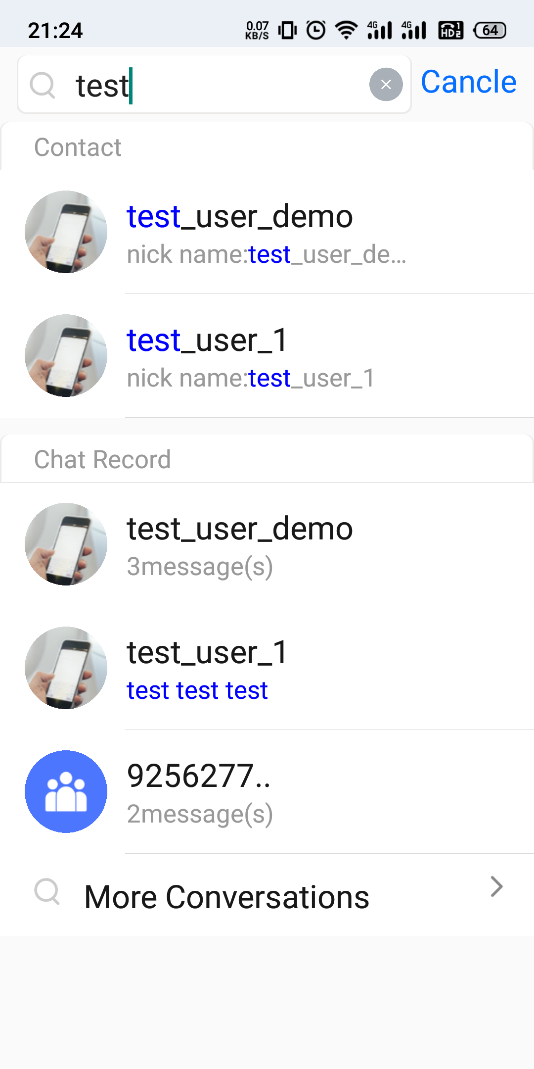 messageList is the message that matches. You can display the message content on the UI and highlight the search keyword, for example, "test" in the Typical Use Cases for the Search image.Below is the sample code:
