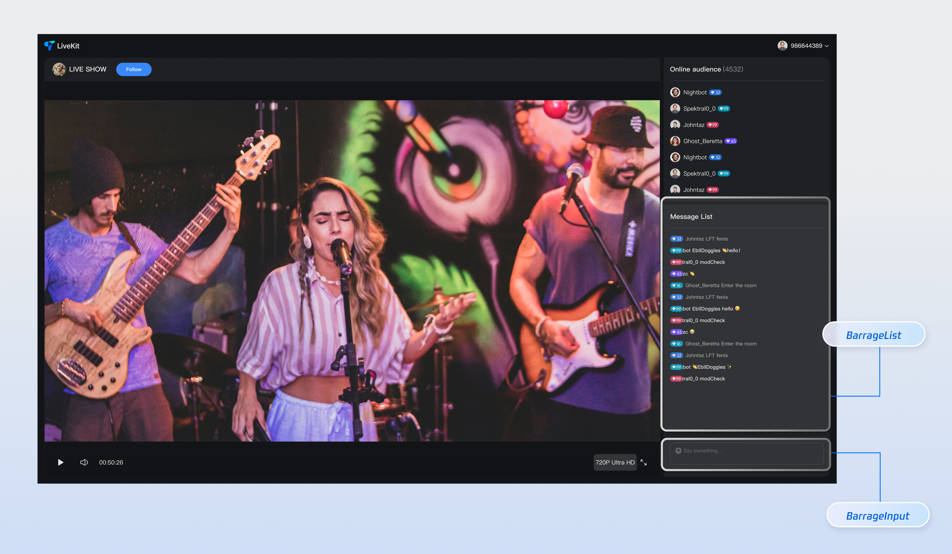 This document provides a detailed introduction to the barrage component, including the barrage message component (BarrageList) and the message sending component (BarrageInput). You can refer to the sample code in this document for seamless integration of our pre-developed components into your existing project, or customize the style and layout according to your needs by following the component customization section in the document.