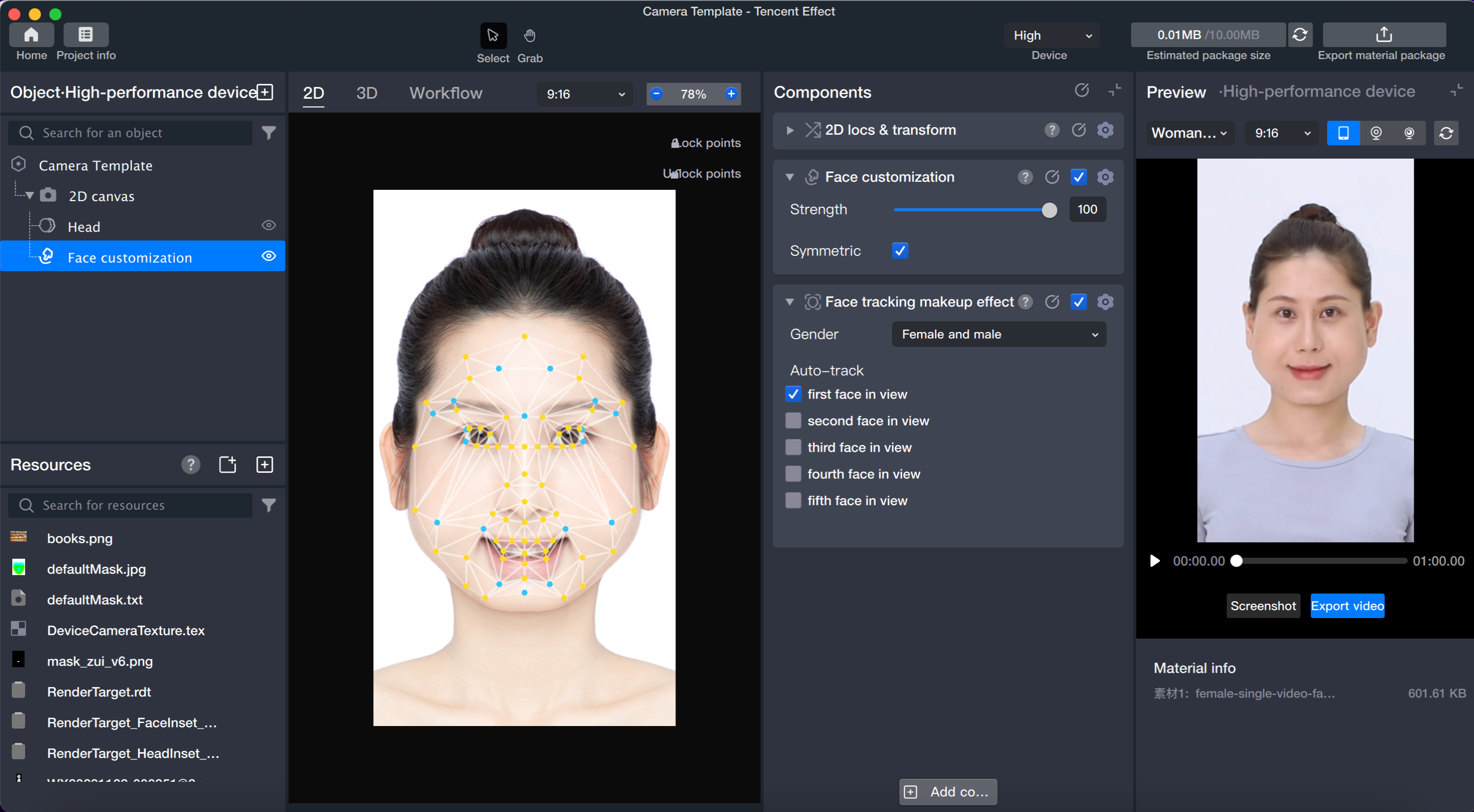 Add the Face Morphing component in the object panel.