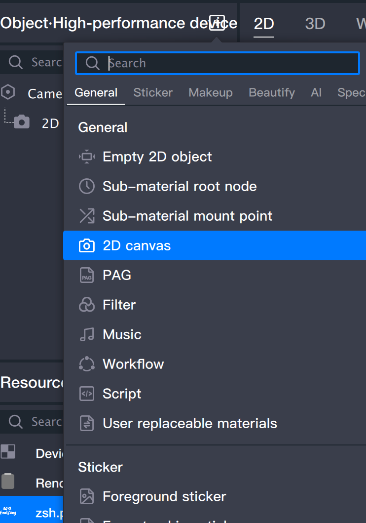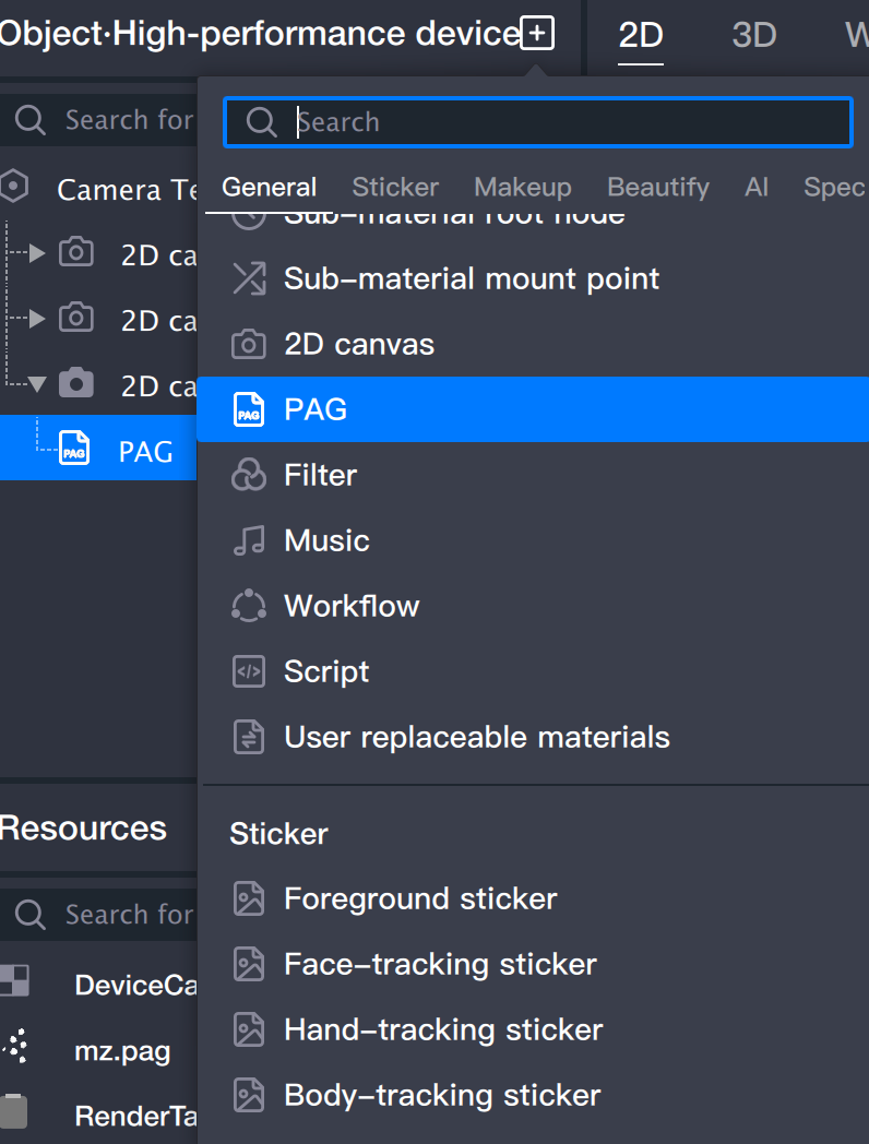 The Tencent Effect object panel renders objects in order: the topmost object is rendered first. This means content shown at the top of the screen appears at the bottom of the object panel.
