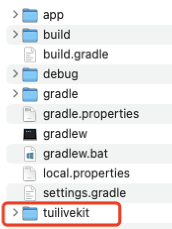 Clone or download the code from GitHub. Then, copy the Android/tuilivekit subdirectory into the same directory as your current Android project's app folder.