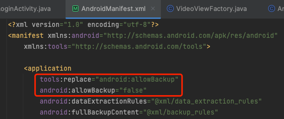 tools:replace="android:allowBackup">