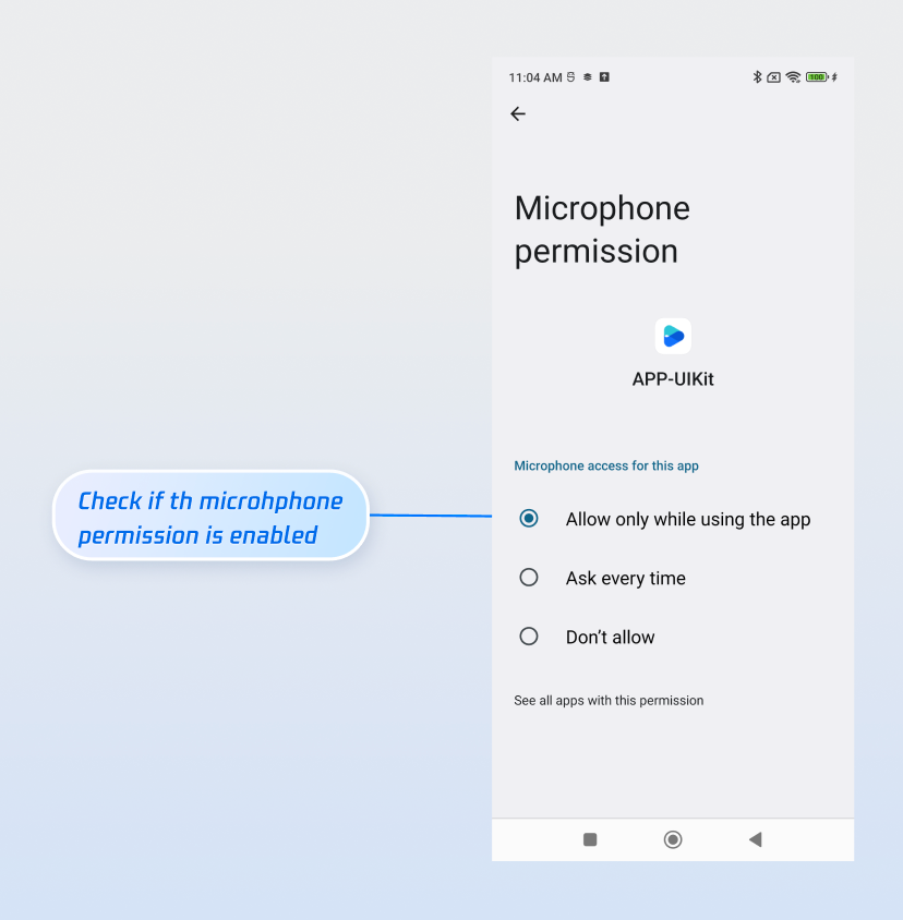 App Info > Permissions > Microphone and verify that microphone access is enabled.
