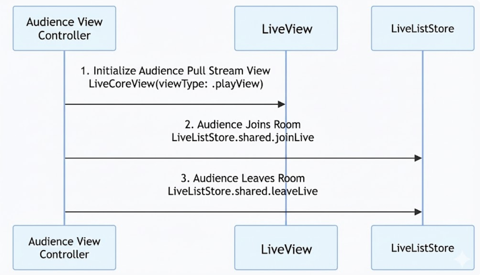 When an audience member leaves the live room, call the leaveLive method from useLiveListState. The SDK will automatically stop playback and exit the room.