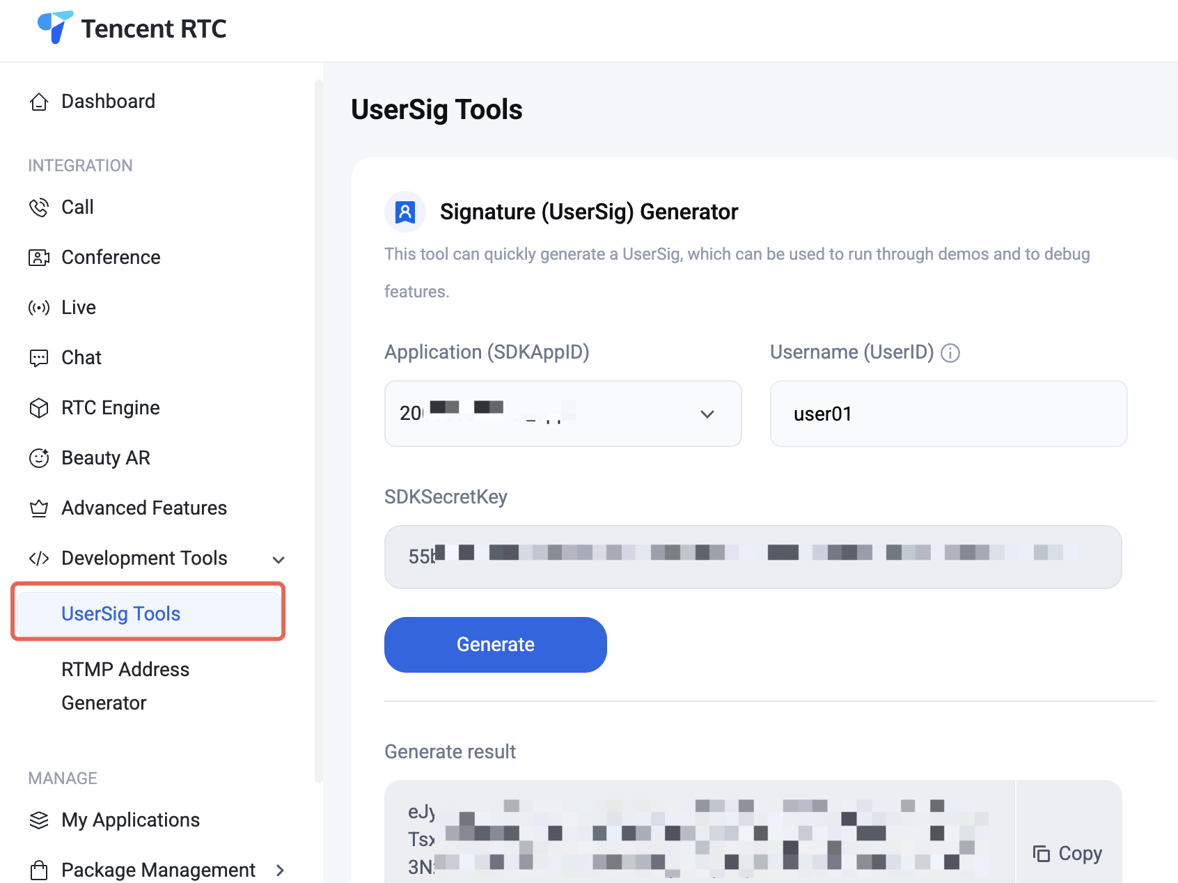 SDKAppID: The unique ID of your Chat application obtained from the console