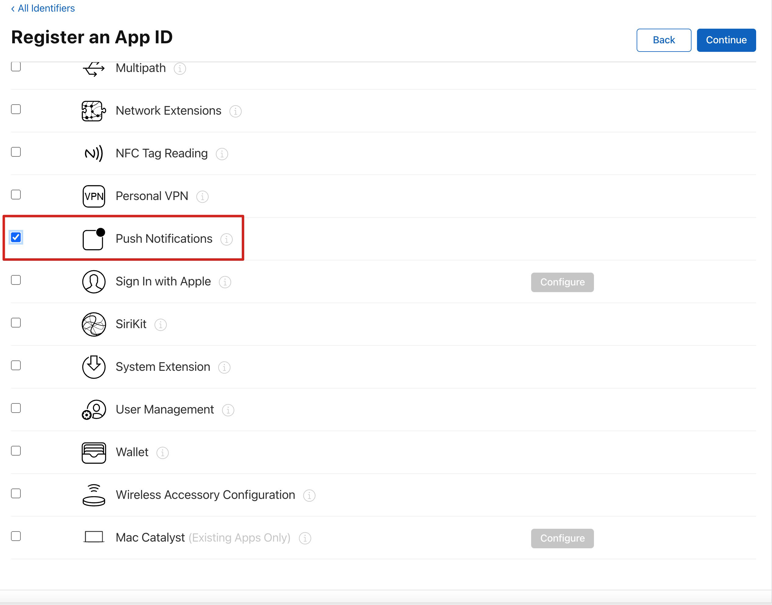 3. You can either create a new AppID or add the Push Notification service to your existing AppID.
