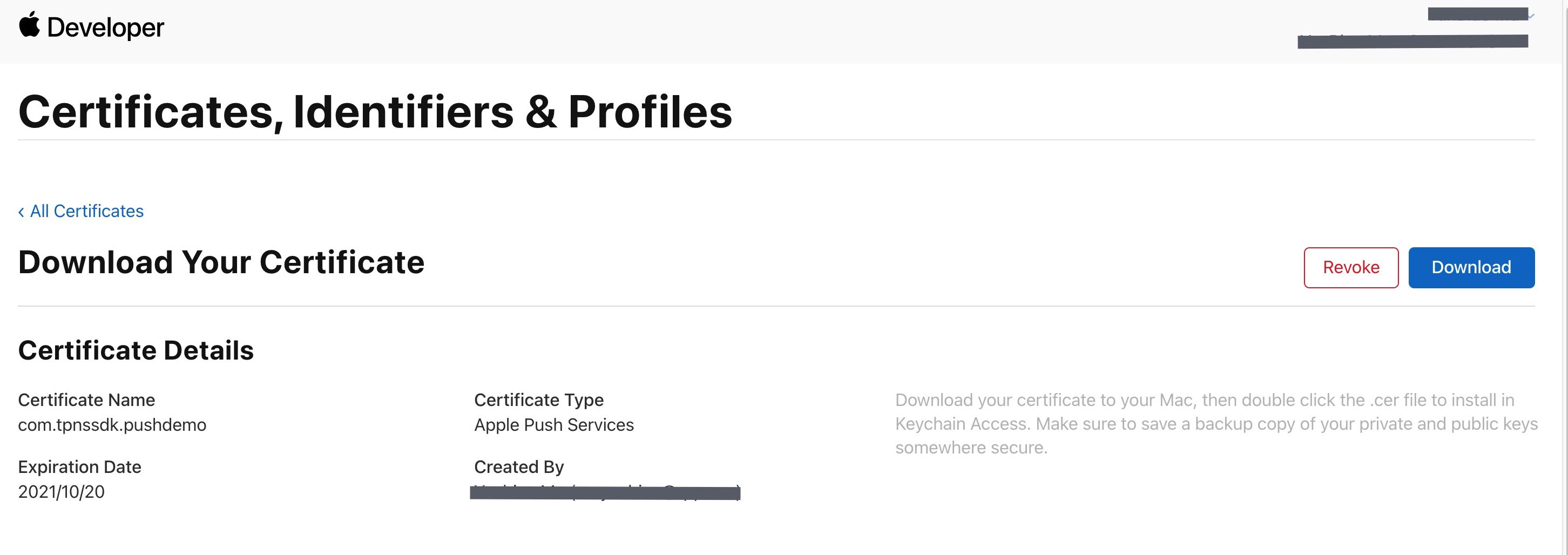 9. Repeat steps 1–8 to download the Production SSL Certificate.