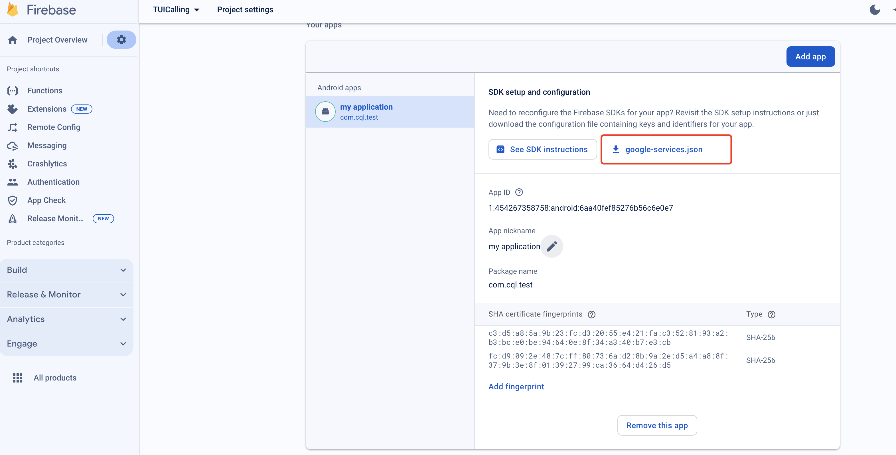 1. Register your app on the FCM Push Platform to obtain your AppID, AppKey, and the google-services.json file required for offline push functionality.