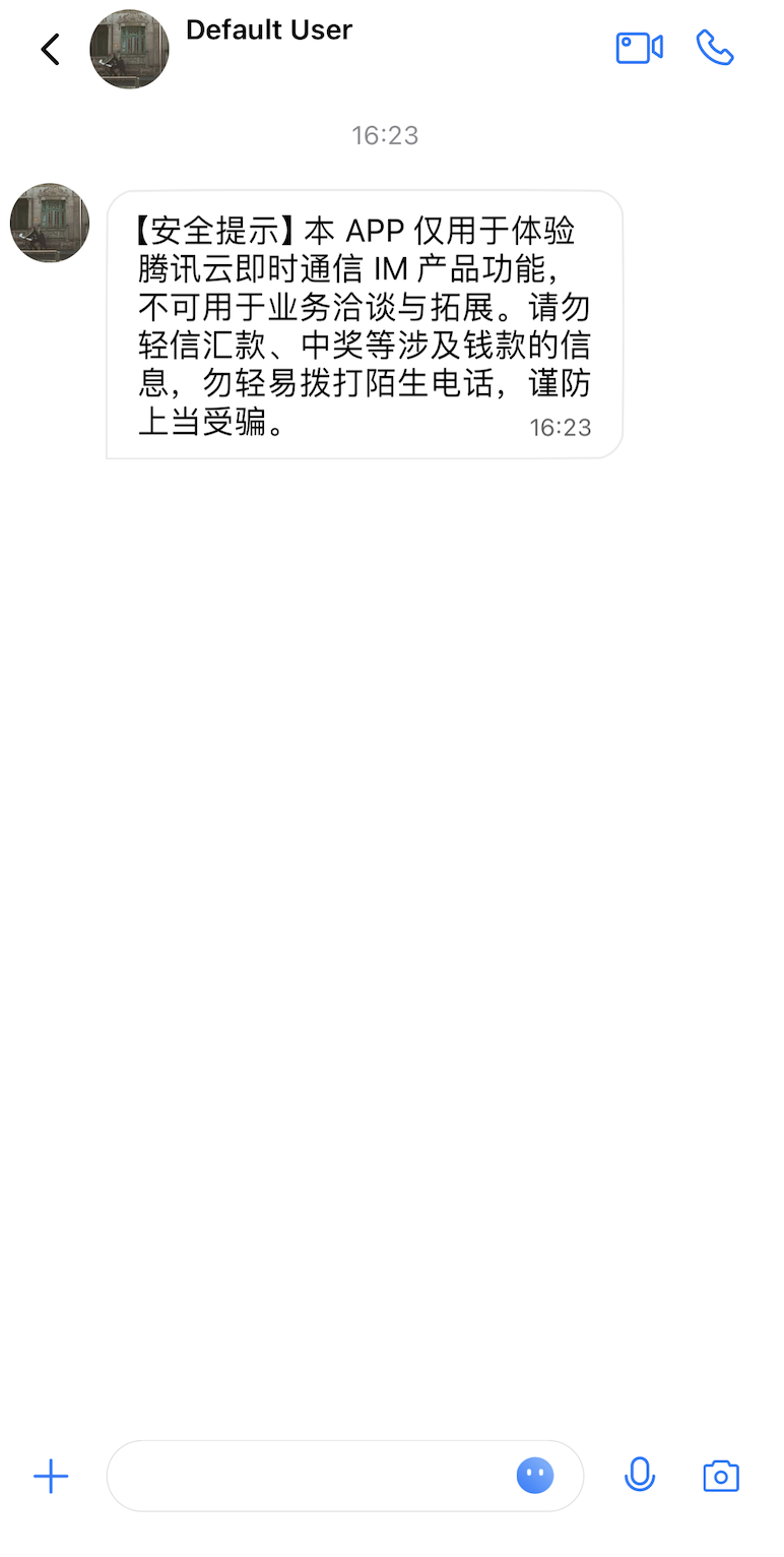 本文介绍如何快速跑通 Chat Demo 来体验文字、语音、视频等消息发送功能。跑通后运行效果如下图所示: