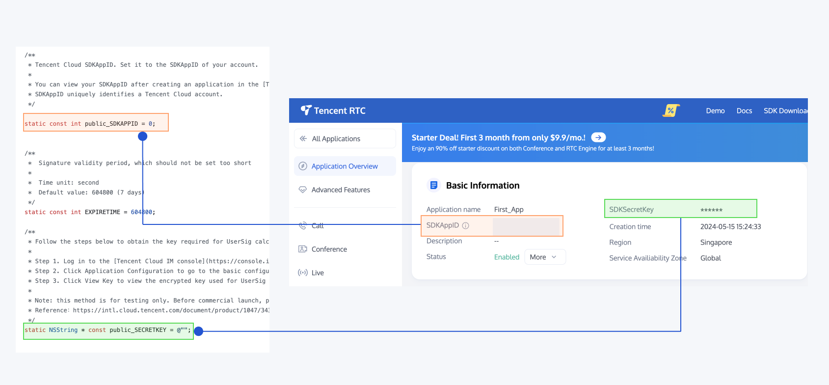 SDKSecretKey:上文获取的 SDKSecretKey。