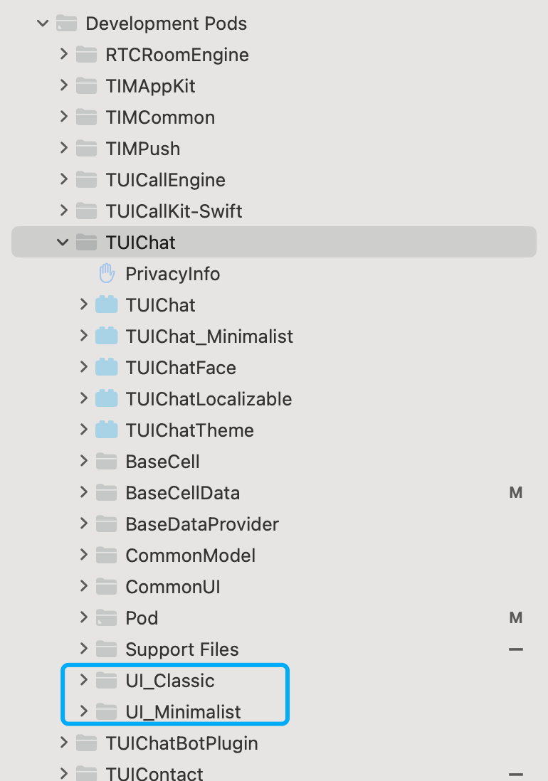 成功集成全部的 TUIKit 组件后,项目结构如下图所示: