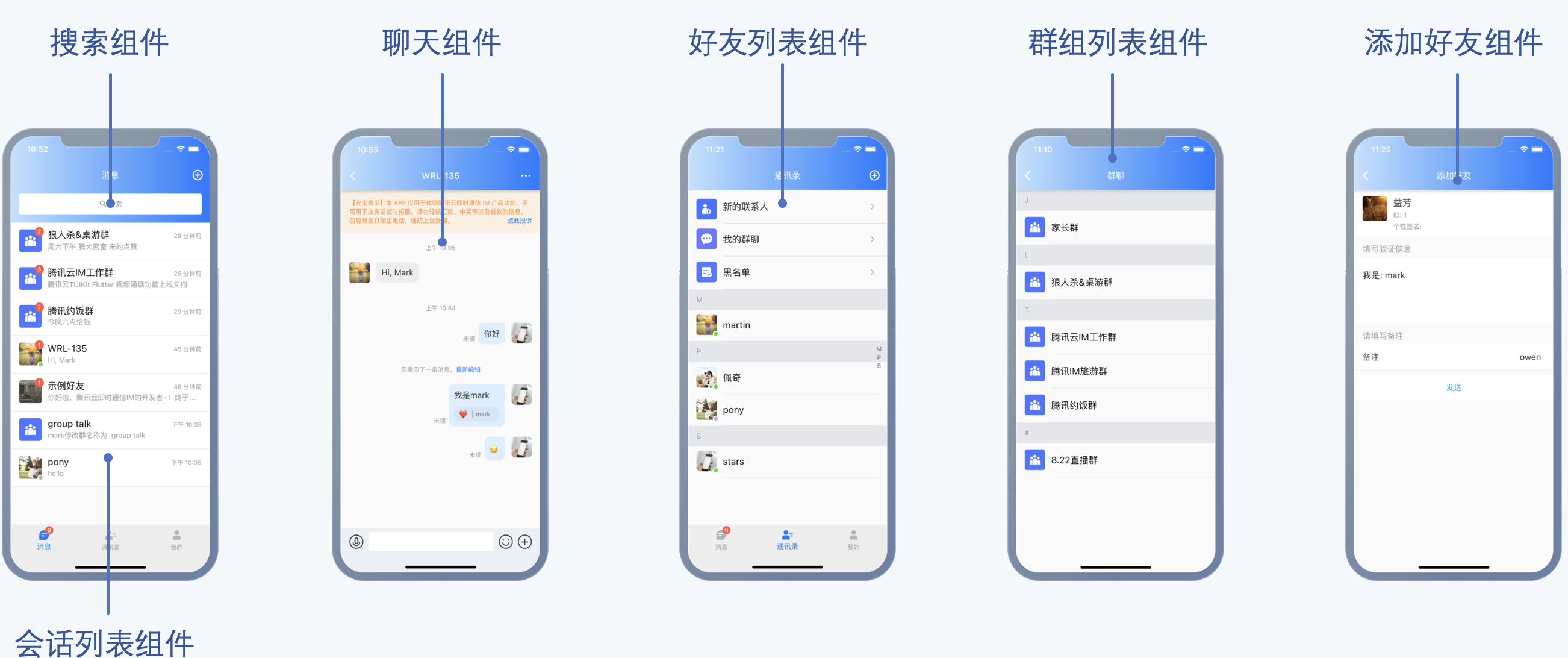 TUIKit 是基于 腾讯云 Chat SDK 开发的一款即时通信 UI 组件库,包括会话、聊天、搜索、关系链、群组、音视频通话等能力。通过 TUIKit,可快速通过一套代码一次开发,集成包含 UI 界面的移动及桌面全平台即时通信应用。