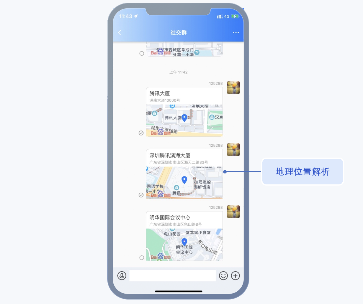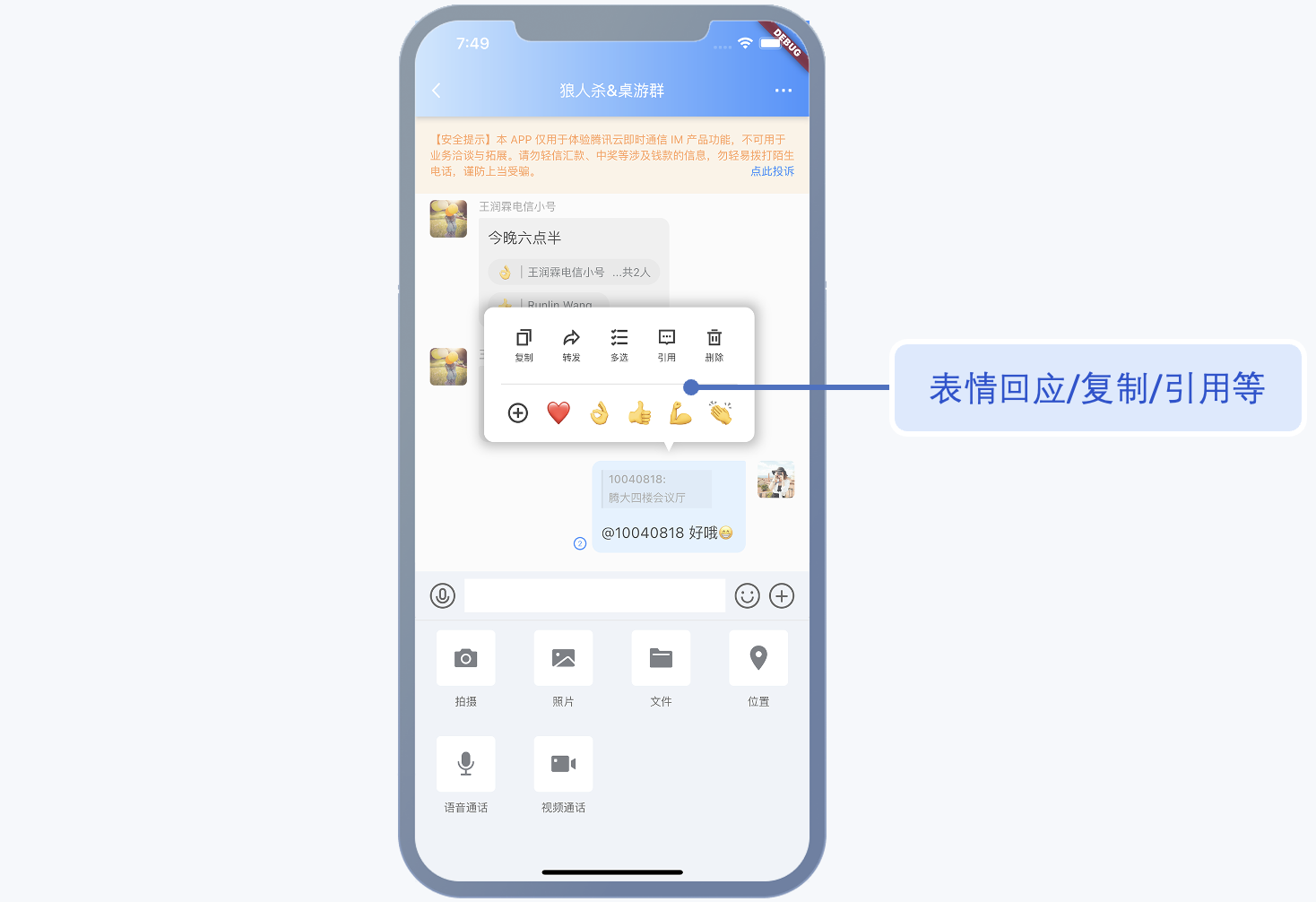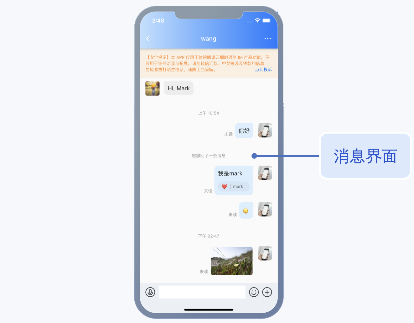 TIMUIKitChat 主要负责消息界面的展示。您可以利用它直接发送不同类型的消息,进行消息表情回应 / 回复 / 引用,并查看消息已读回执详情等操作。