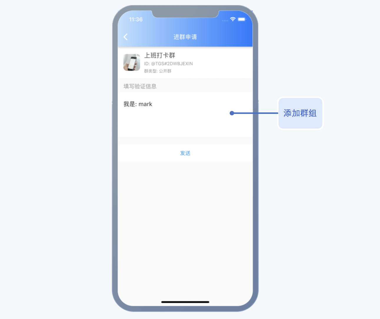 TIMUIKitAddFriend 为添加好友页面。TIMUIKitAddGroup 为添加群组页面。界面效果如下图所示: