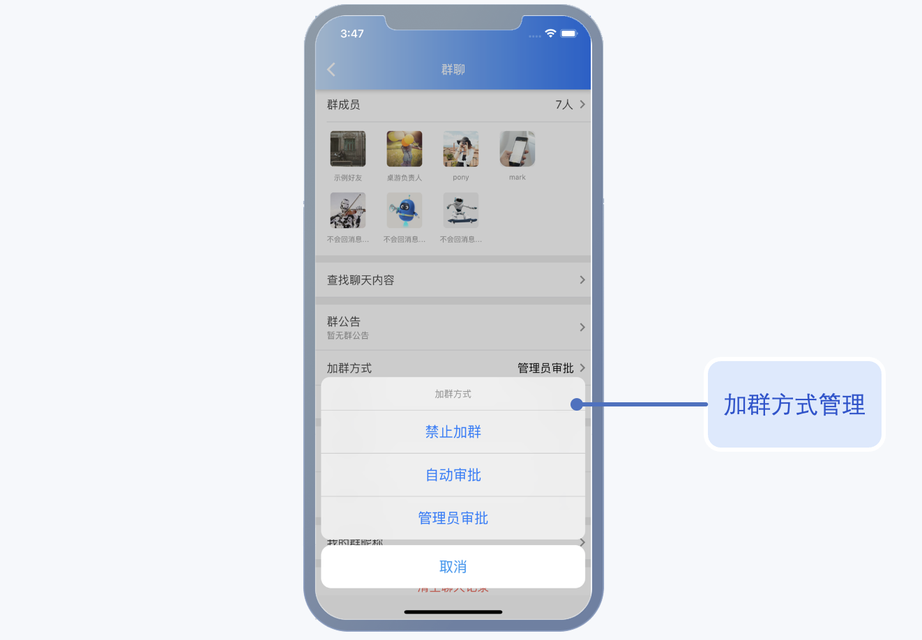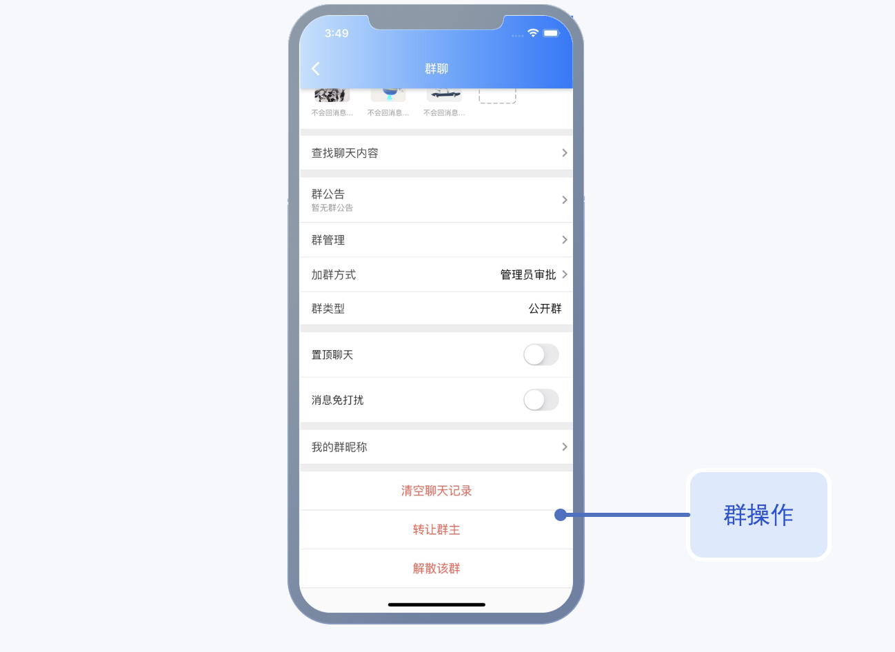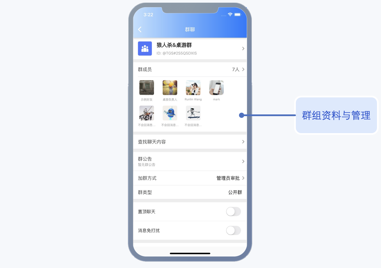 TIMUIKitGroupProfile 主要负责群资料、群成员、群组权限的展示与管理。界面效果如下图所示: