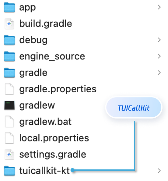 settings.gradle.kts(或settings.gradle)文件,在其中增加如下代码,导入tuicallkit-kt组件到项目中。include(":tuicallkit-kt")