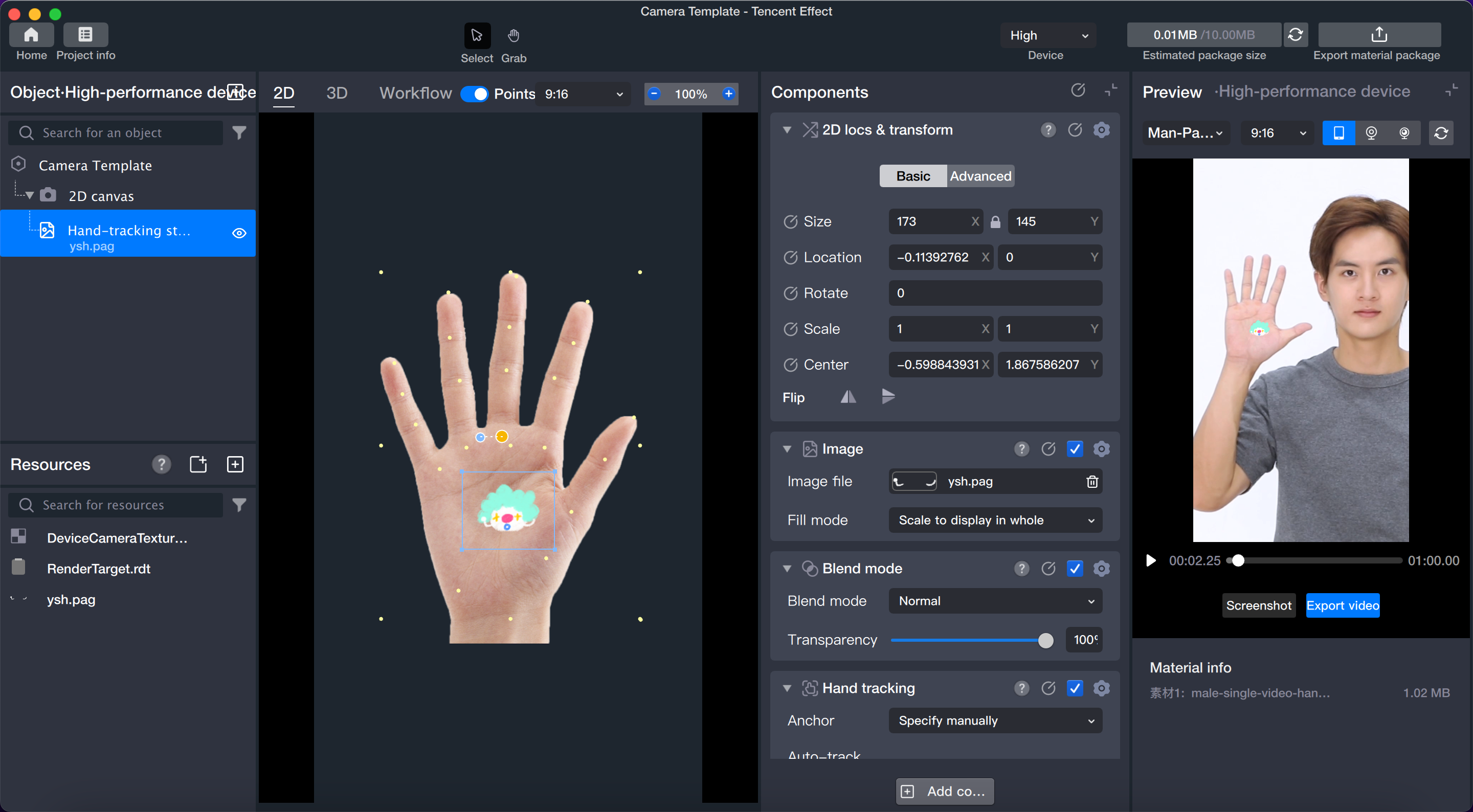 手势跟随贴纸即拍摄时实时跟随手部的贴纸。目前 Tencent Effect 支持将 2D 贴纸文件和 PAG 文件添加到手部。
