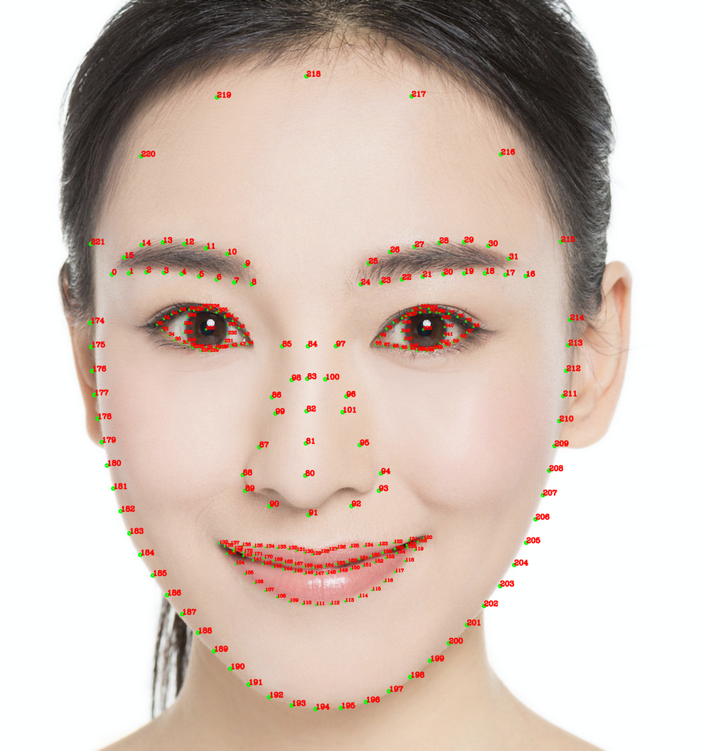 人脸检测(识别人脸出框、多人脸、面部遮挡),256个面部关键点位识别与输出。