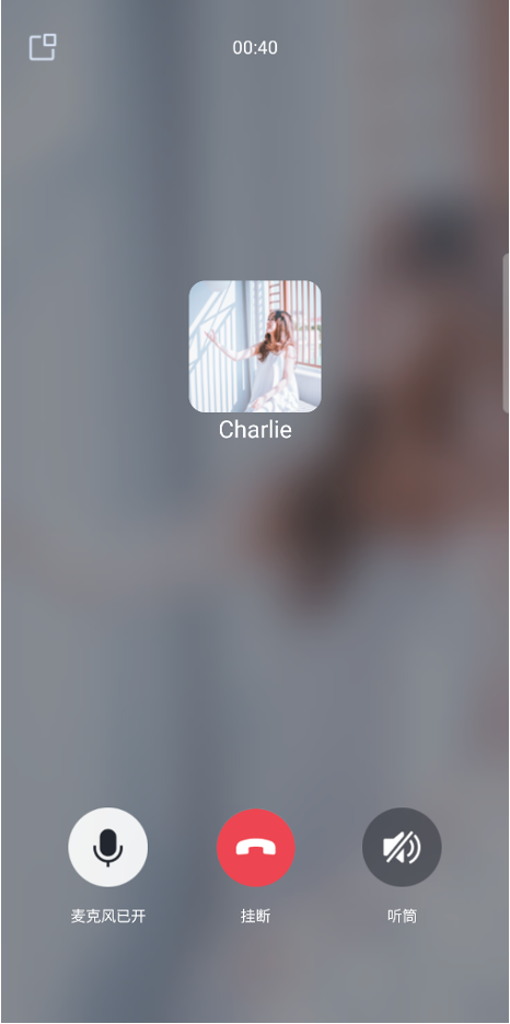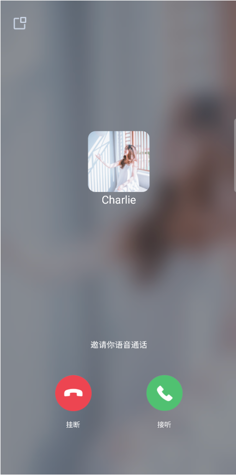 Charlie 呼叫 Jane | Jane 收到来电 | Jane 点击"接听"后双方开始通话 |