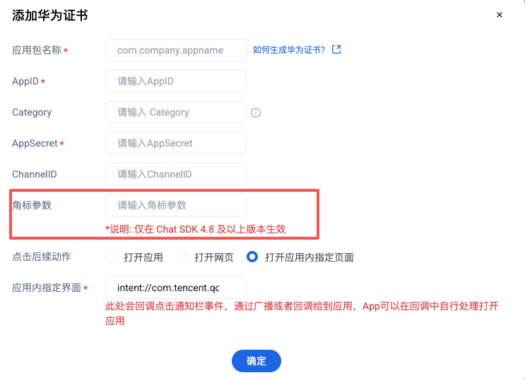 控制台配置华为角标参数为应用的启动类,例如 “com.tencent.qcloud.tim.demo.SplashActivity”。组件会自动解析和更新角标;反之不会更新角标。