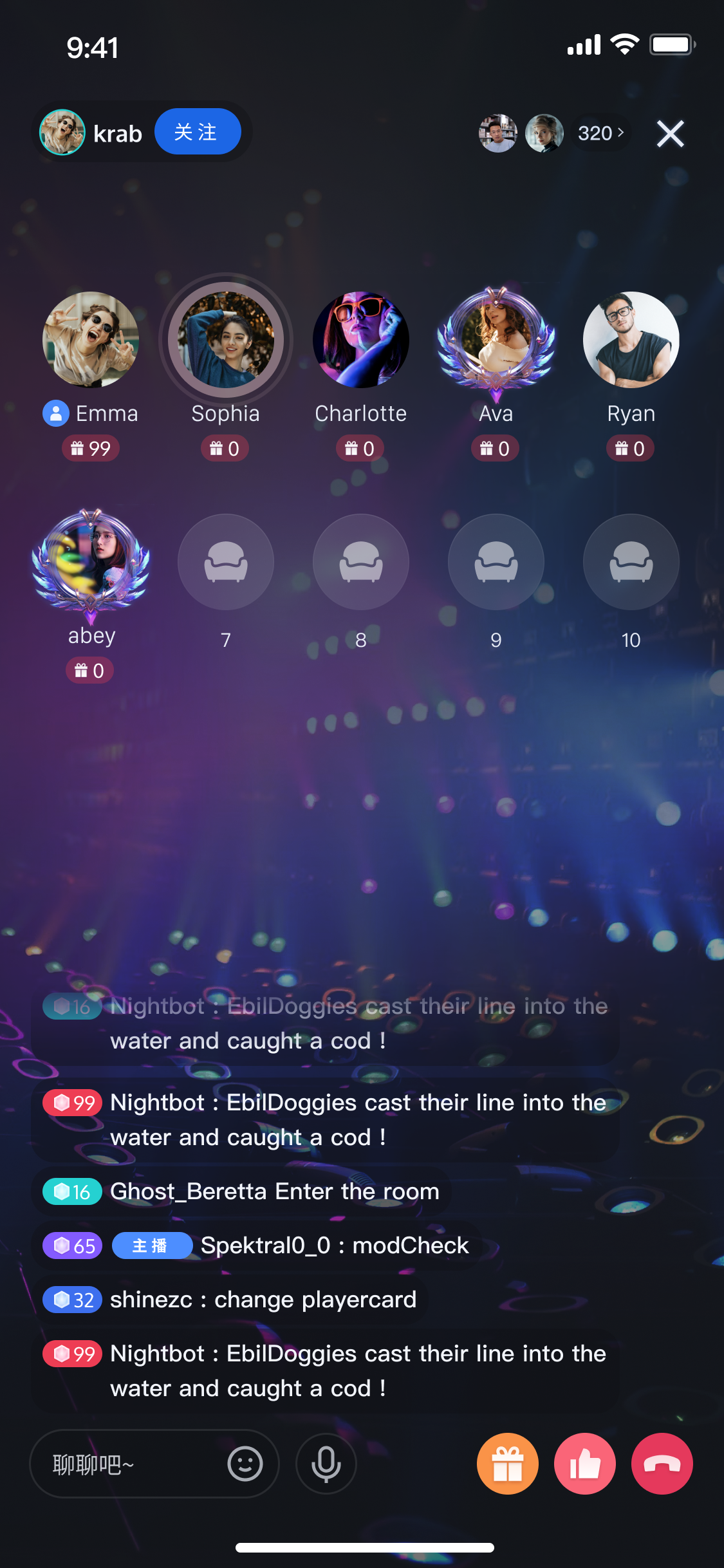 直播列表 | 主播开播前预览 | 主播开始语聊直播 | 观众观看语聊房 |