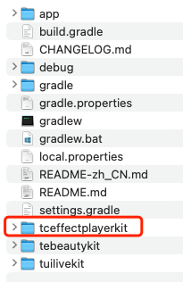 Android/tceffectplayerkit 文件夹拷贝到自己的工程中,和 app 同级目录。