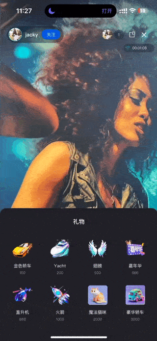 礼物特效播放:提供基础和高级两种特效播放器,满足不同性能需求。