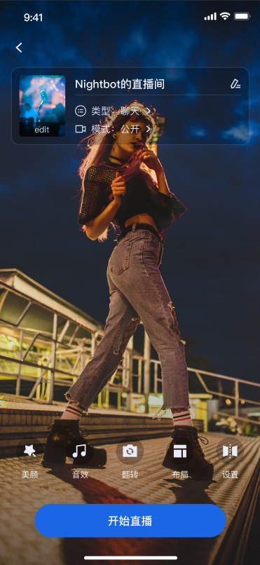 主播开播全流程功能,包括开播前的准备和开播后的各种互动