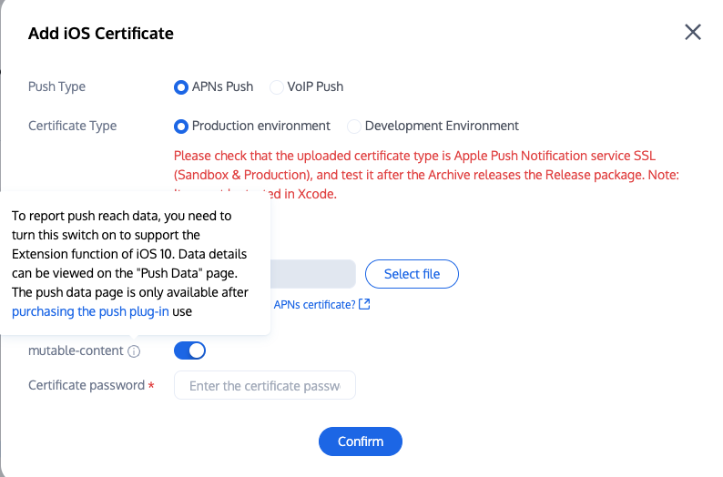 1. 上报推送触达数据,需要开启 mutable-content 开关来支持 iOS 10 的 Extension 功能。