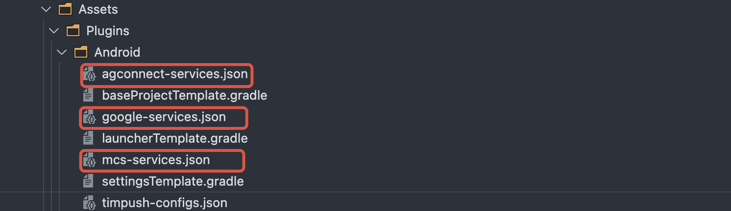 timpush-configs.json 文件添加到项目的 Assets/Plugins/Android 目录下,如果该目录不存在,请手动创建。