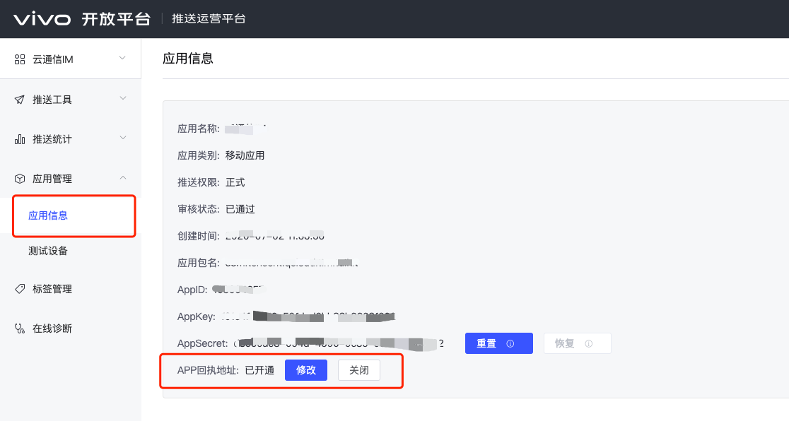 打开回执开关后,请务必确保回执地址正确配置。不配置或者配置地址错误,都会影响推送功能。