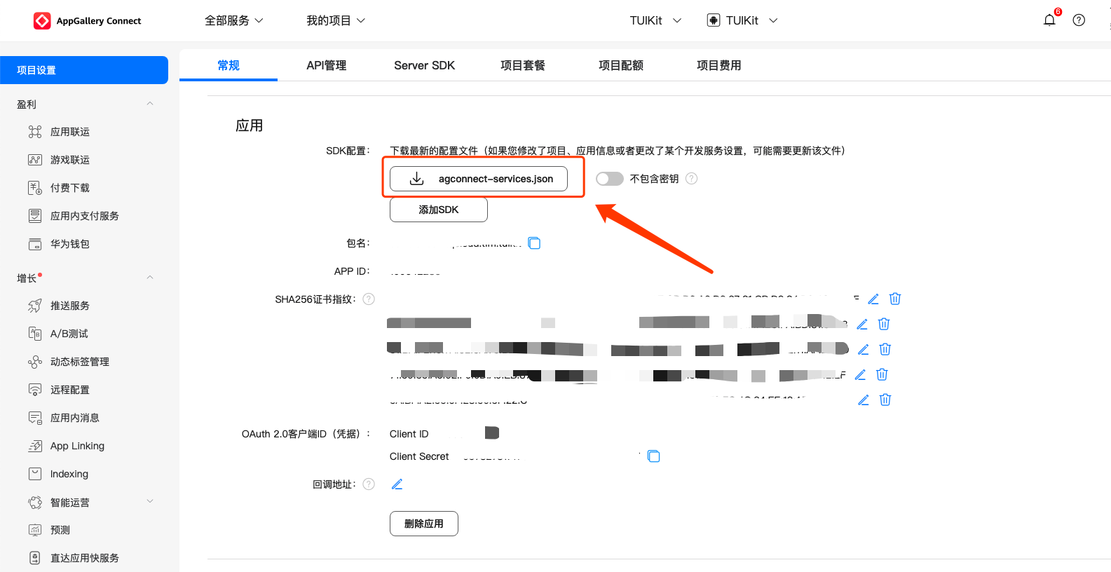 完成控制台厂商推送信息填写后,下载并添加配置文件到工程。将下载的