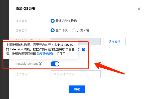 1. 上报推送触达数据,需要开启 mutable-content 开关来支持 iOS 10 的 Extension 功能。