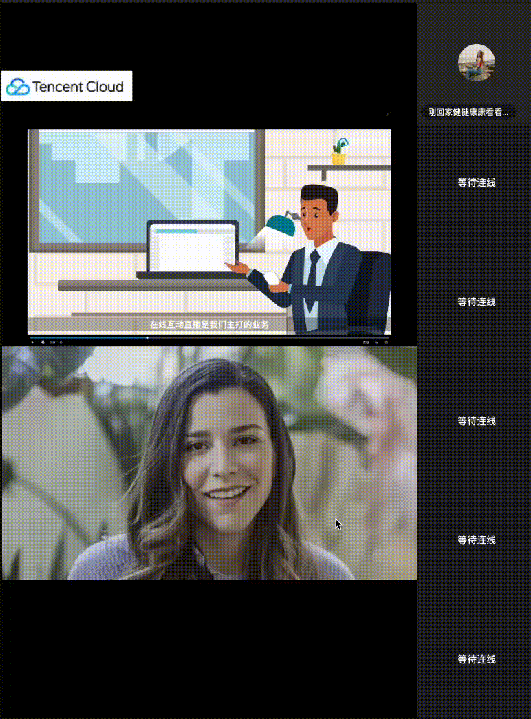为了更好地让您体验及理解视频源编辑画板 组件的 seatViewUI 插槽定制化能力,我们提供了直播连麦场景示例场景供您参考,您可以参考上述步骤3将以下代码增量复制至您的项目中实现类似场景的效果。